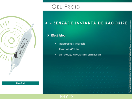 Etapa 3: Senzatie de racorire cu Gel Froid cu efect de Igloo, ce stimuleaza circulatia sangvina si tonifica profund pielea.